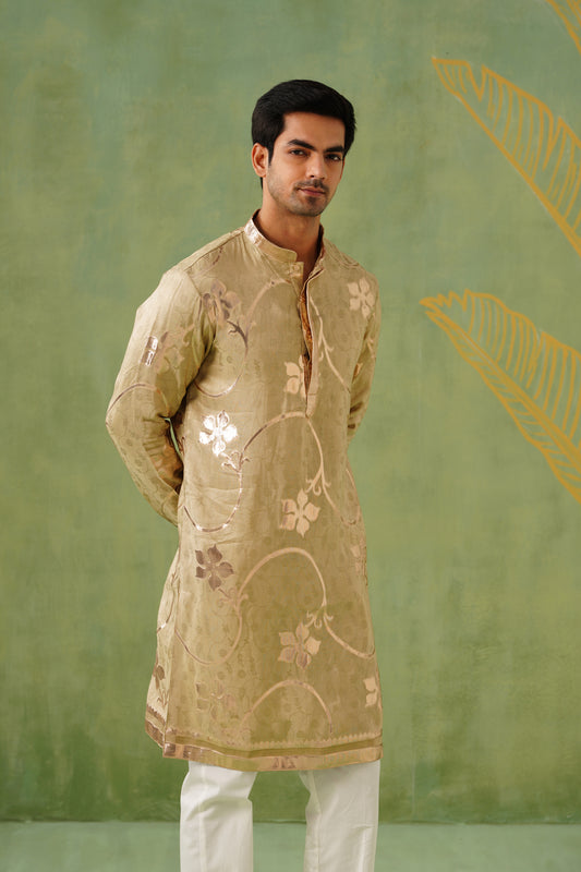 Green Jaipuri Tussar Ghicha Silk Kurta Set