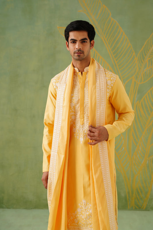 Yellow Kashmiri Embroidery Kurta Set With Dupatta