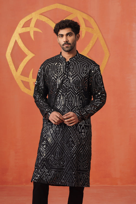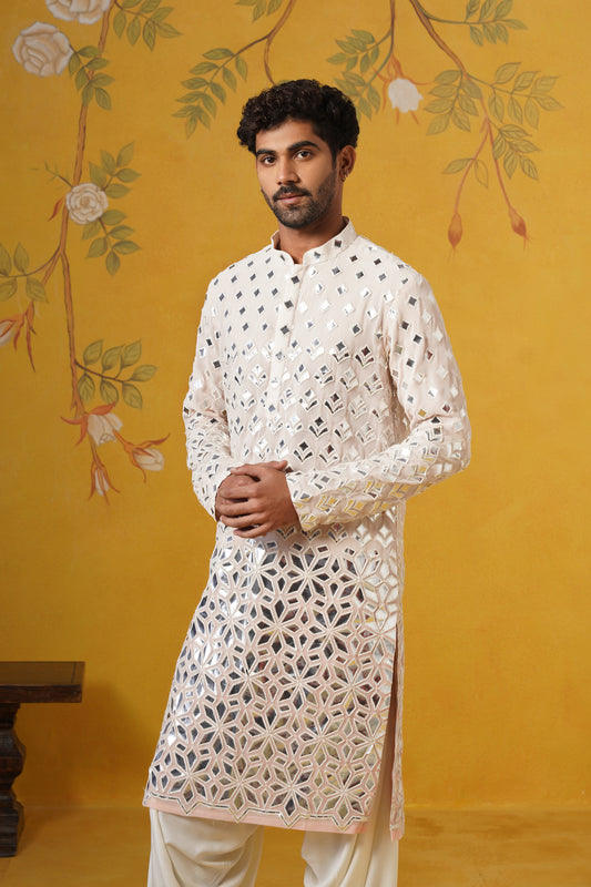 White Mirror Sequin Embroidery Kurta Set With Dupatta
