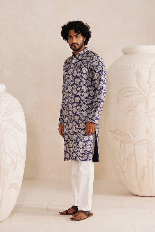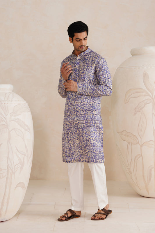 Indigo Jaipuri Tussar Ghicha Silk Kurta Set