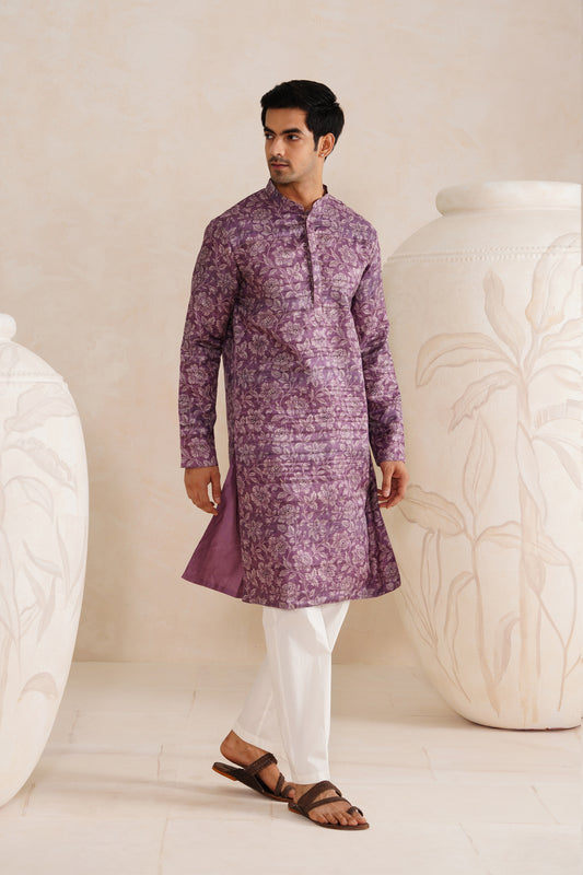 Purple Jaipuri Tussar Ghicha Silk Kurta Set