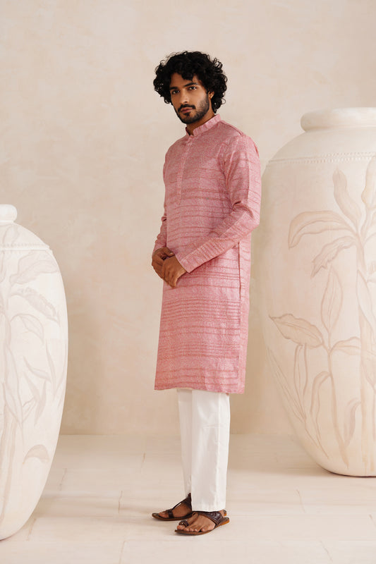 Pink Jaipuri Tussar Ghicha Silk Kurta Set
