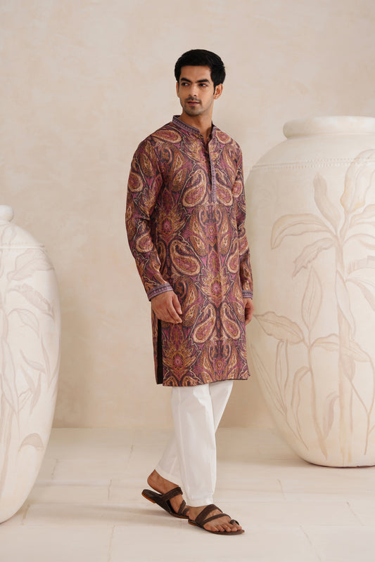 Brown Paisley Tussar Ghicha Silk Kurta Set
