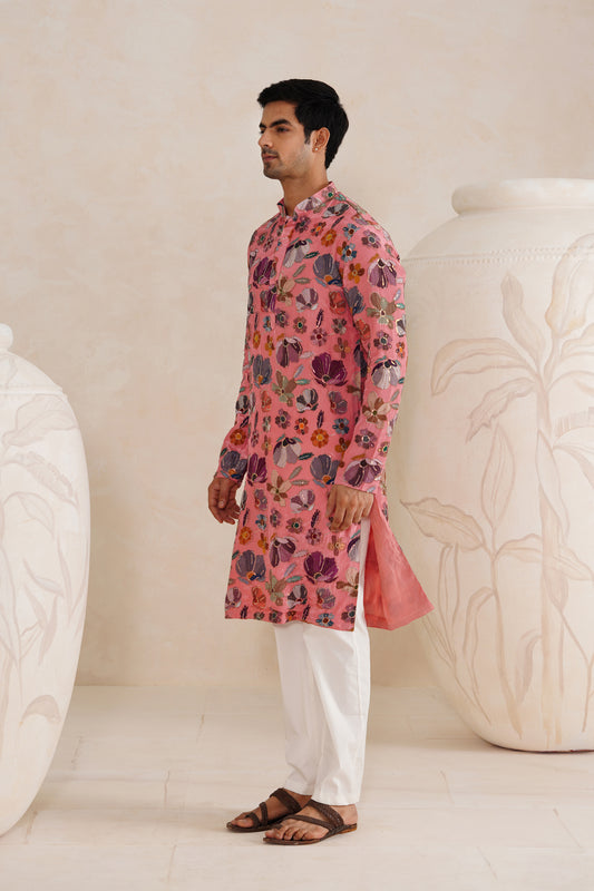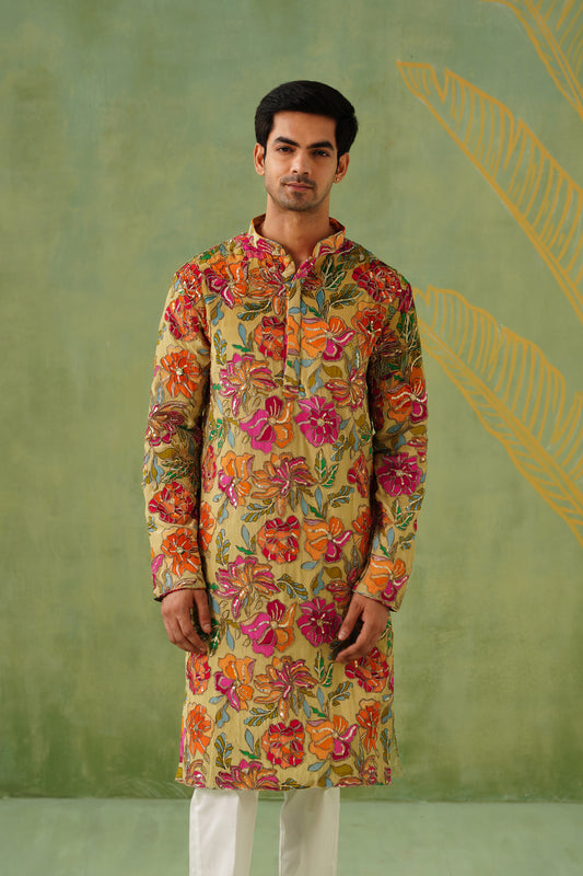 Mehendi Green Embroidery With Floral Print Kurta Set