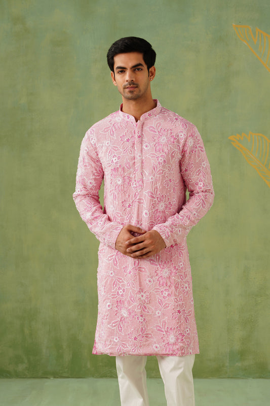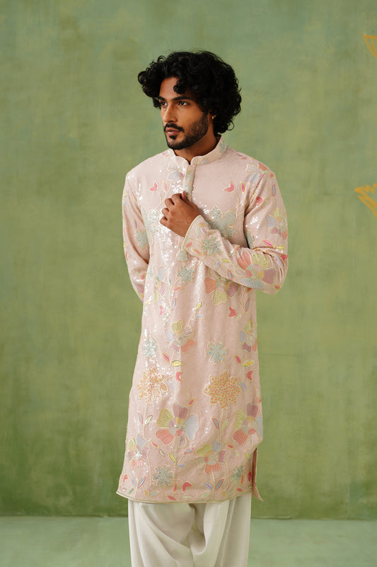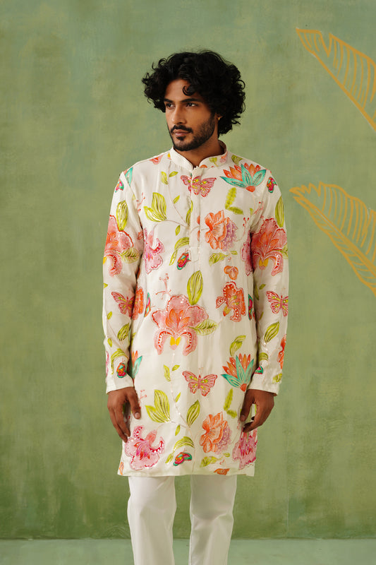 White Floral Sequin Embroidery Kurta Patiyala Set