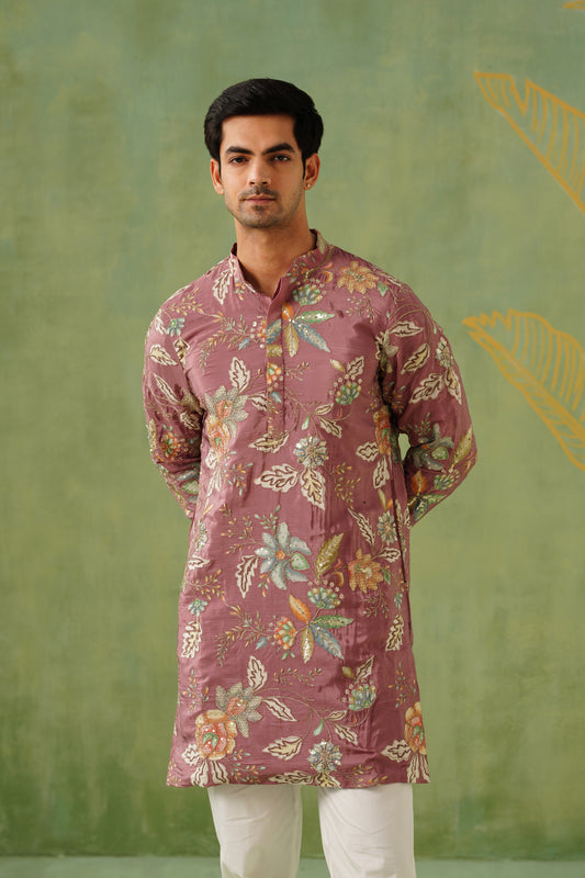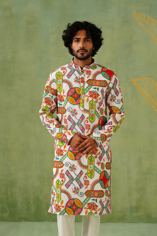 Mehendi Embroidery With Print Kurta Patiyala Set