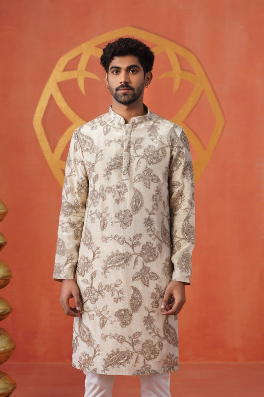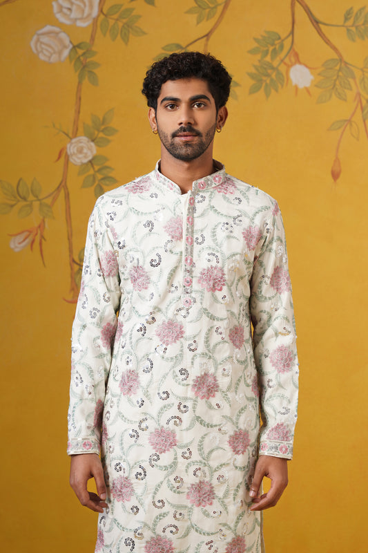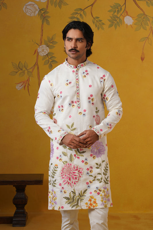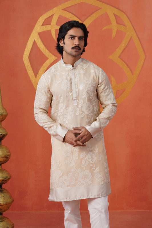 Cream Blossom Embroidery Kurta Set