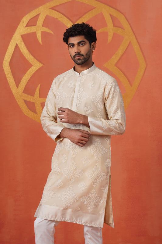 Cream Embroidery With Print Kurta Set