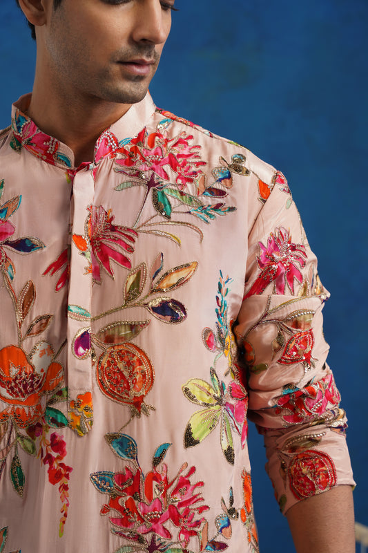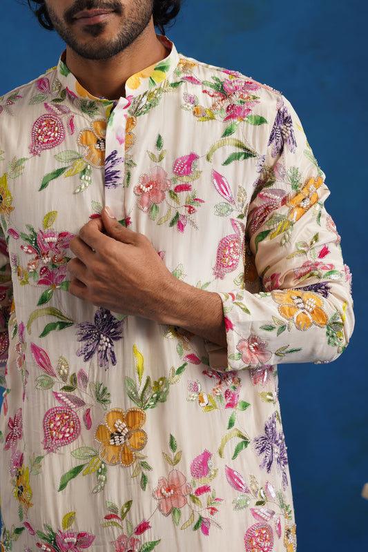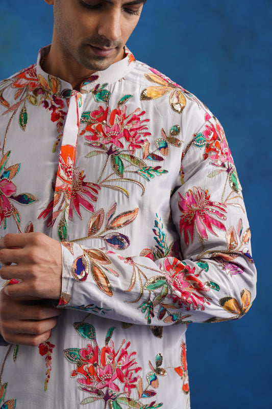 Onion Blossom Embroidery With Print Kurta Patiyala Set