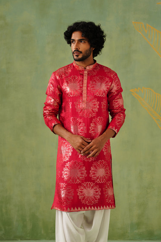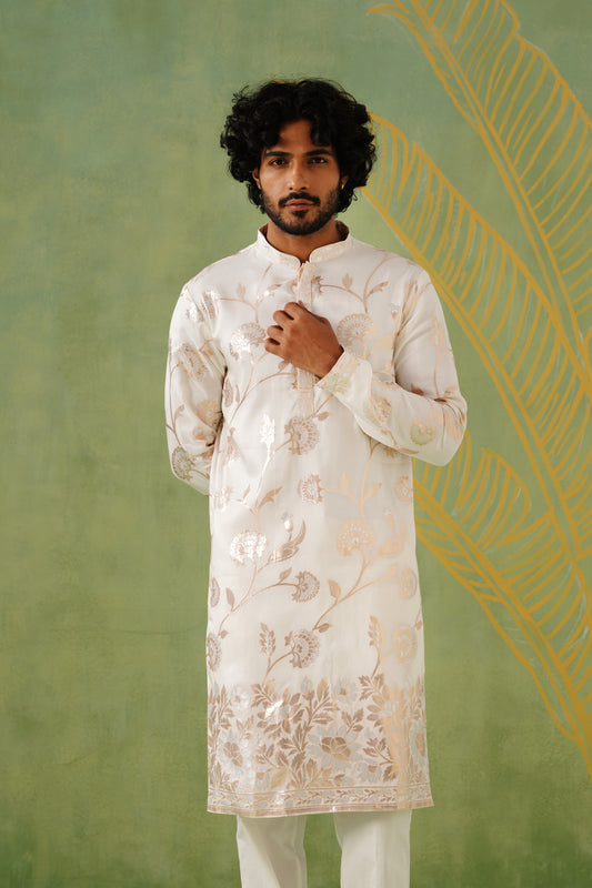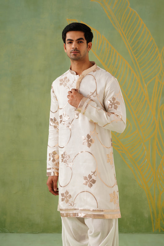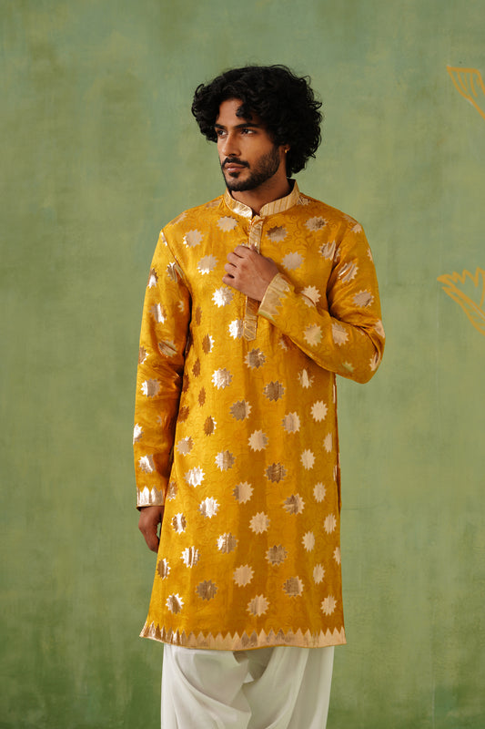 Haldi Yellow Golden Weave Kurta Patiyala Set